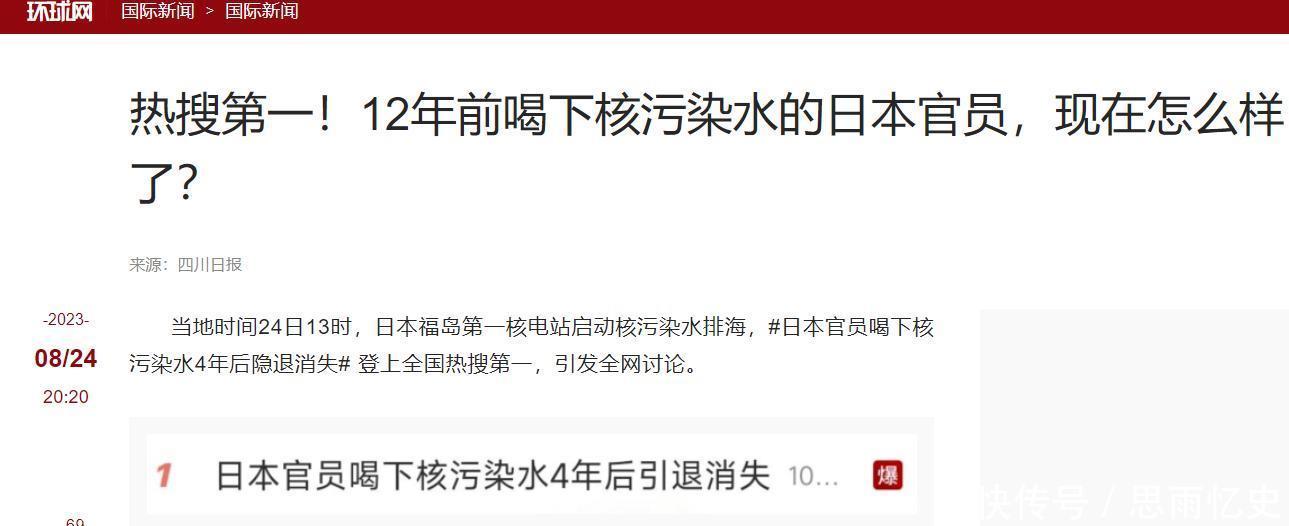 1.热搜第一!12年前喝下核污染水的日本官员,现在怎么样了?——环球网