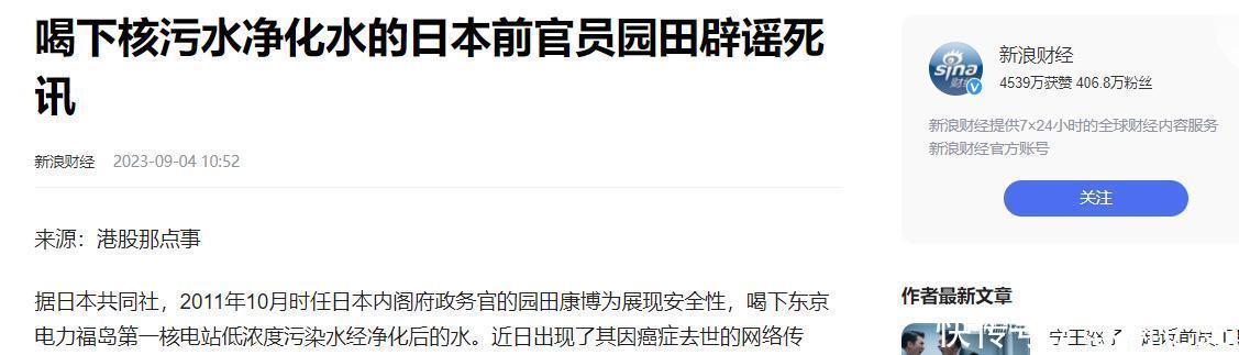 2.喝下核污水净化水的日本前官员园田辟谣死讯——新浪财经