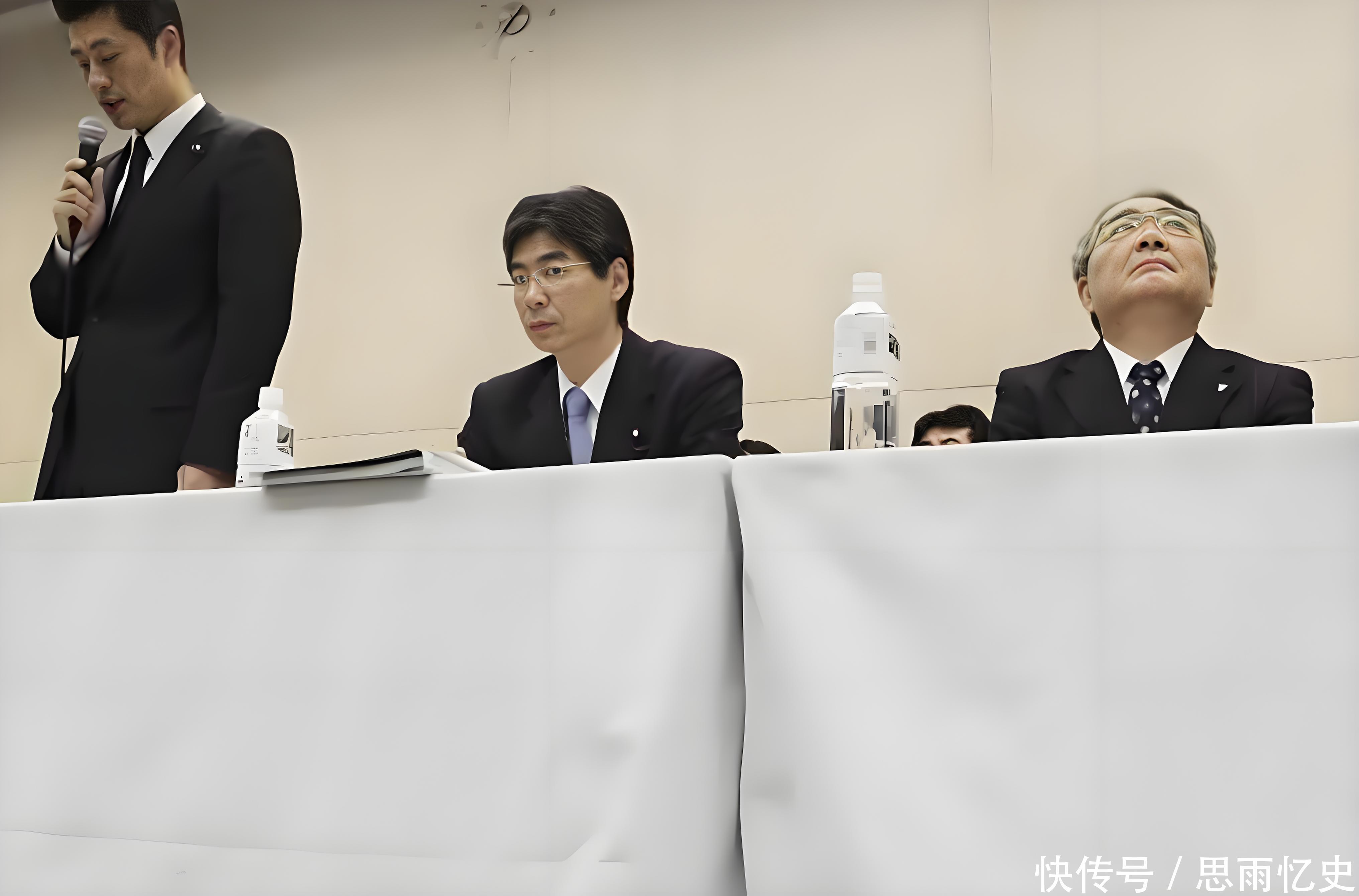 让我们再次回到2011年的喝水现场,一个西装革履的中年人站在一众媒体之前,日媒的记者们把镜头对准了他。