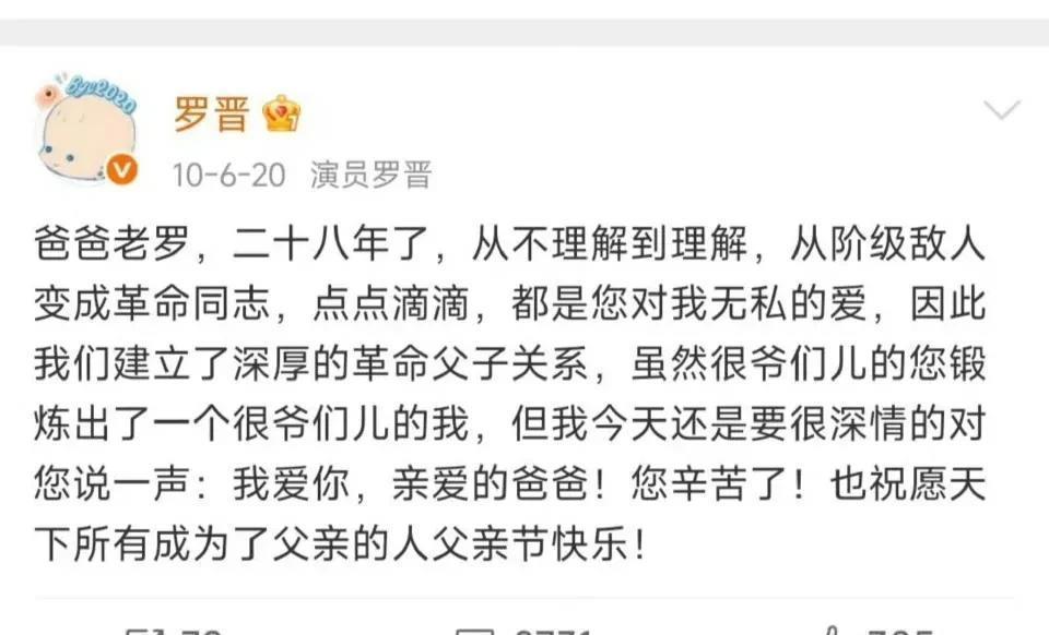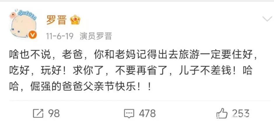 此刻的罗晋正一边承受失去爸爸的巨大悲痛,一边还要应付外面乱七八糟的婚变传言,还要强撑着处理爸爸的后事,真的太让人心疼了。今晚无意间翻到了罗晋在社交平台上,记录了好多和父母的日常,没有啥华丽的话,全是藏不住的孝心。