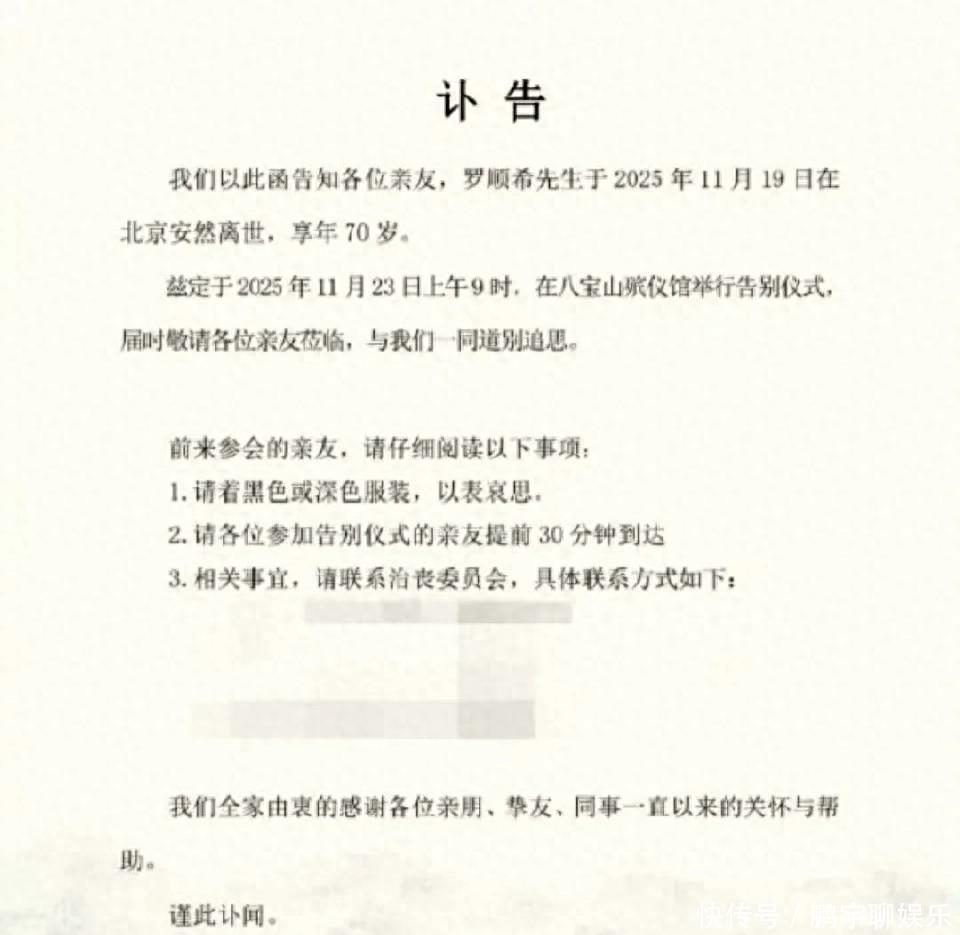 11月19日,罗晋的父亲罗顺希因病在北京去世,享年70岁。